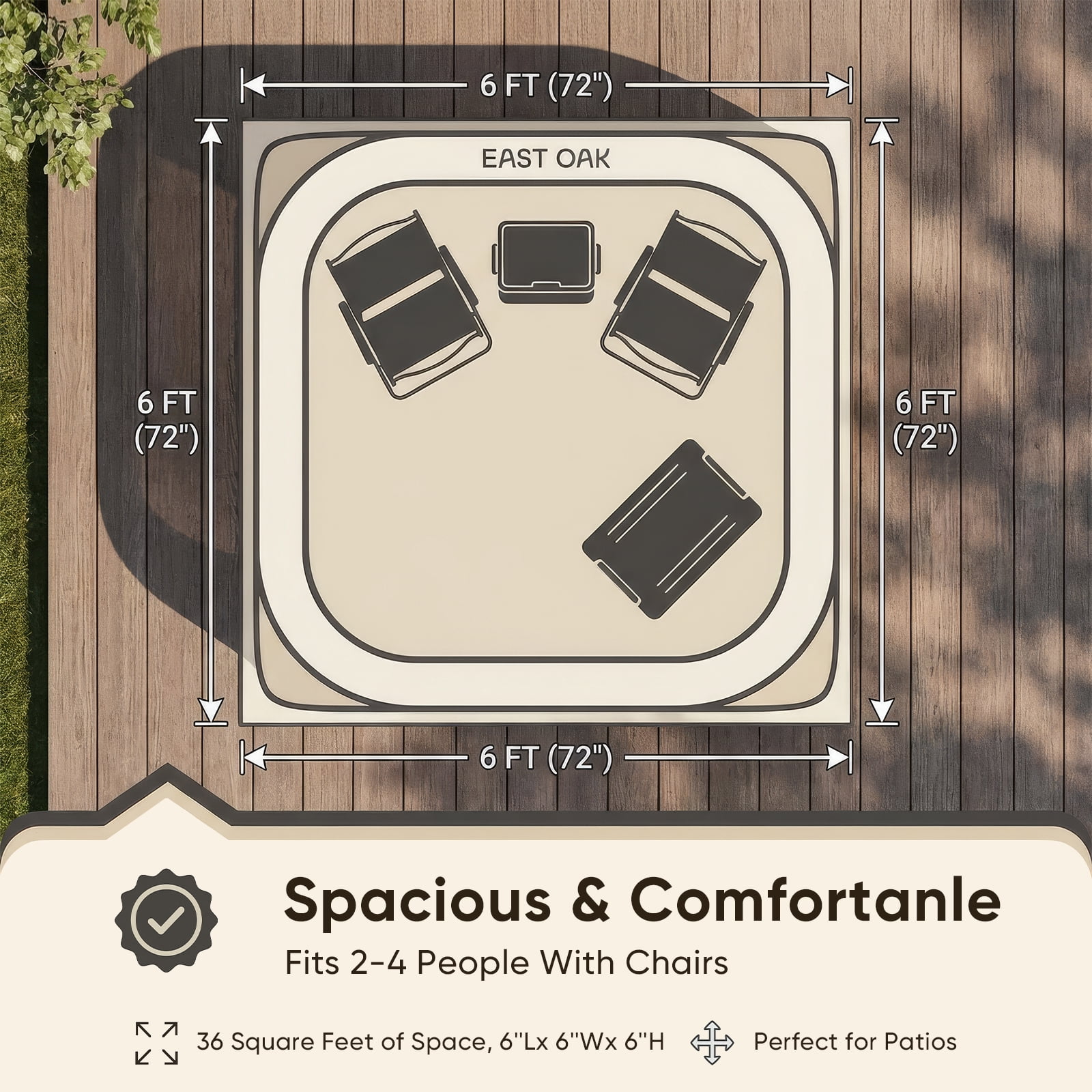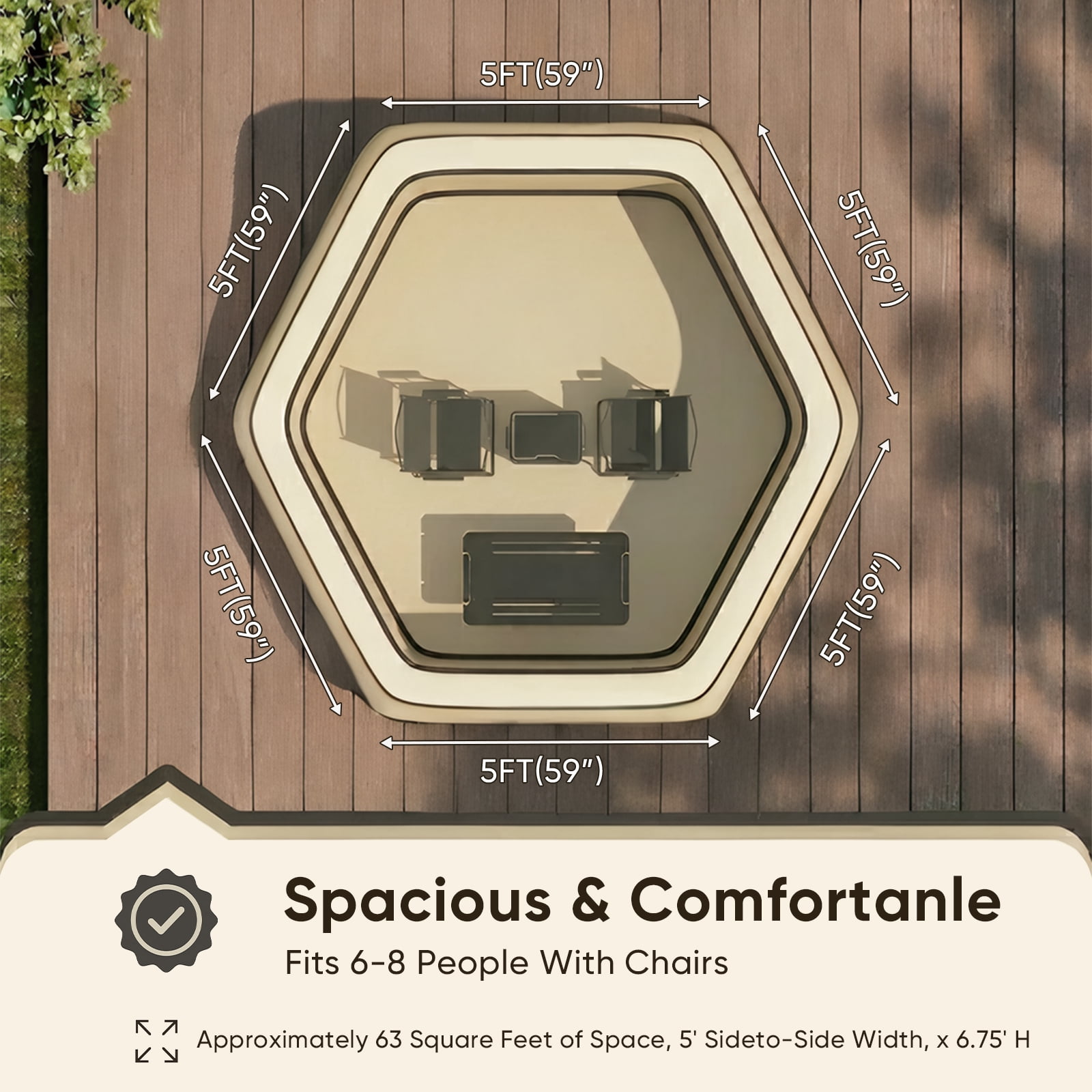 - Dimensions: 71 x 71 x 65 inches (6 x 6 x 5.5 ft)