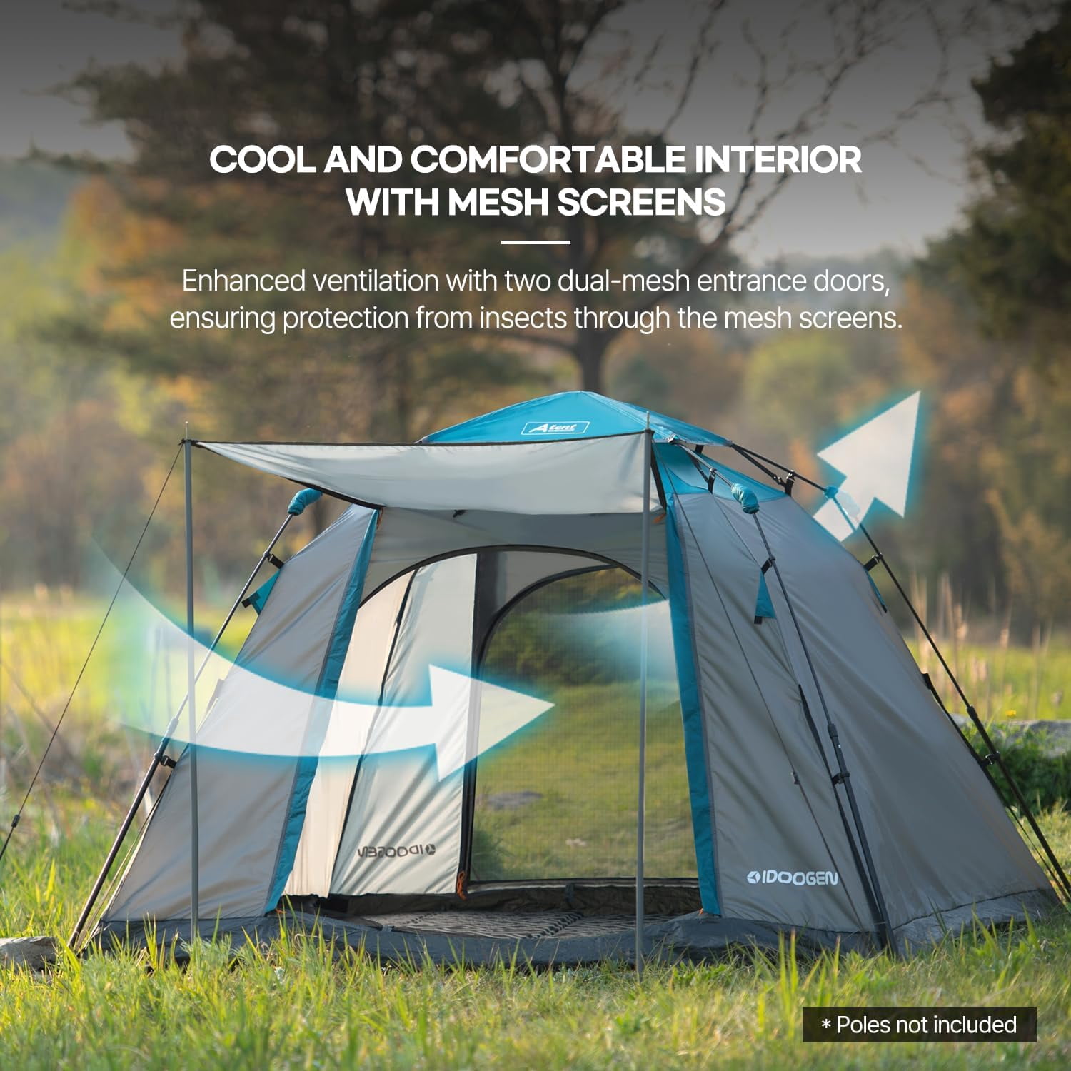 - 【Distinct Ventilation with Dual Doors & Mesh Windows】The pop up tent boasts a unique double-door design that combines ventilation and weather protection, ensuring privacy and a breathable, comfortable living space throughout your journey.The mesh windows offer excellent airflow while keeping insects at bay.With the rainfly removed, you can enjoy stunning views of the starry sky.