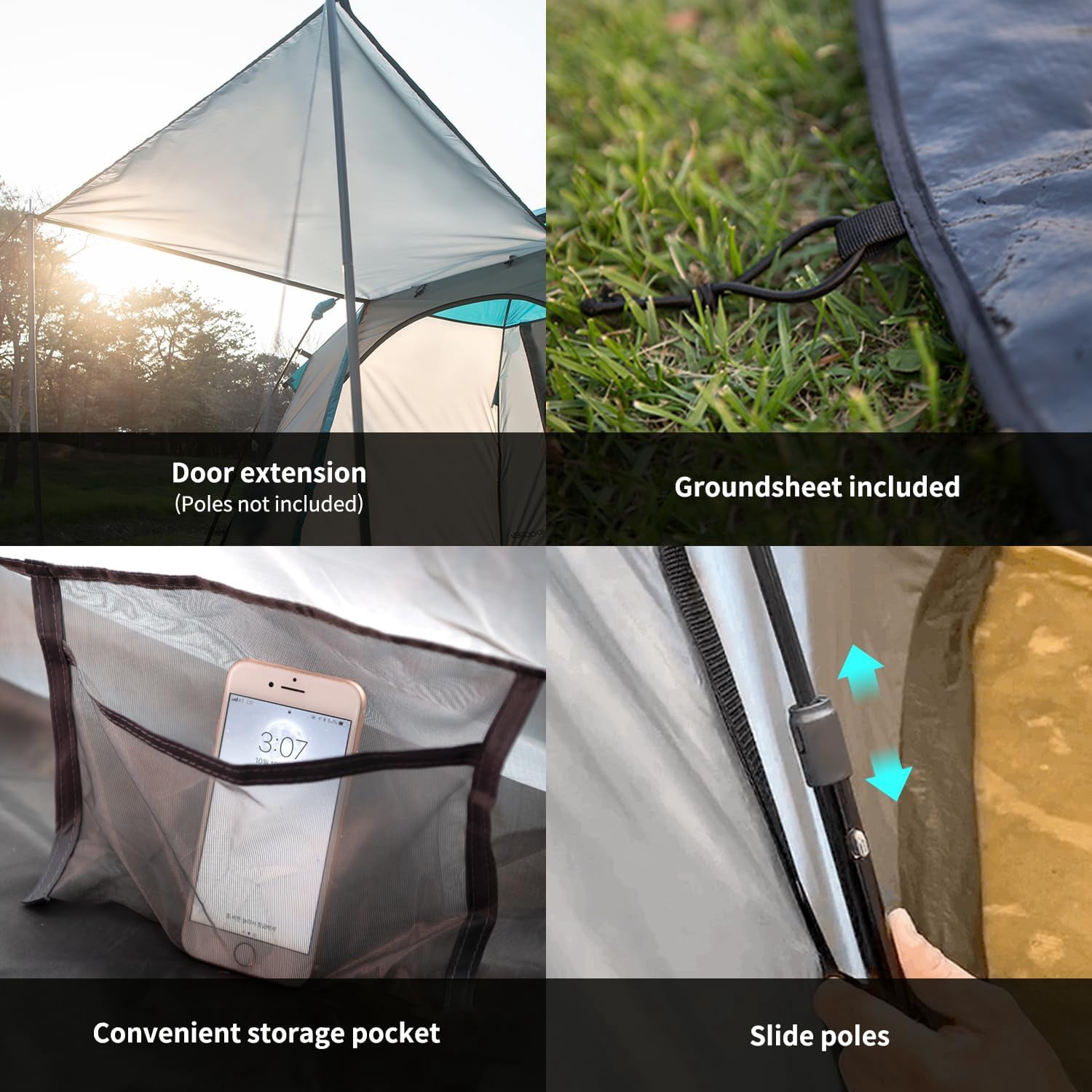 - 【Convenient 2-Door&Dual-Zipper Design】The reactive outdoor tent with two doors, it’s convenient for family members to step outside at night without disturbing others. The dual zipper allows easy access from both inside and outside, and each door features a two-layer design that ensures excellent ventilation during summer.