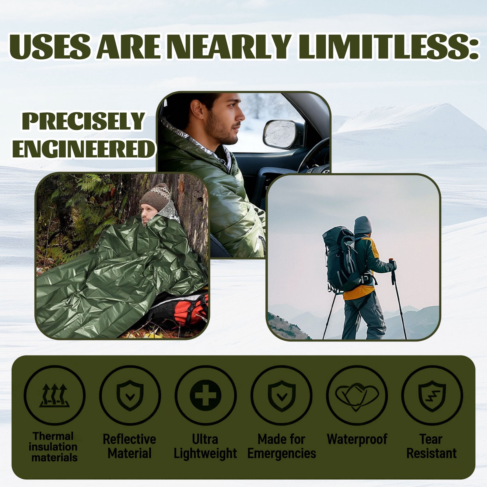[All-Season & Multi-Scenario Use] – Designed for reliable thermal protection in cold, wet, or windy conditions. Perfect for camping, hiking, travel, emergency preparedness, and survival kits.