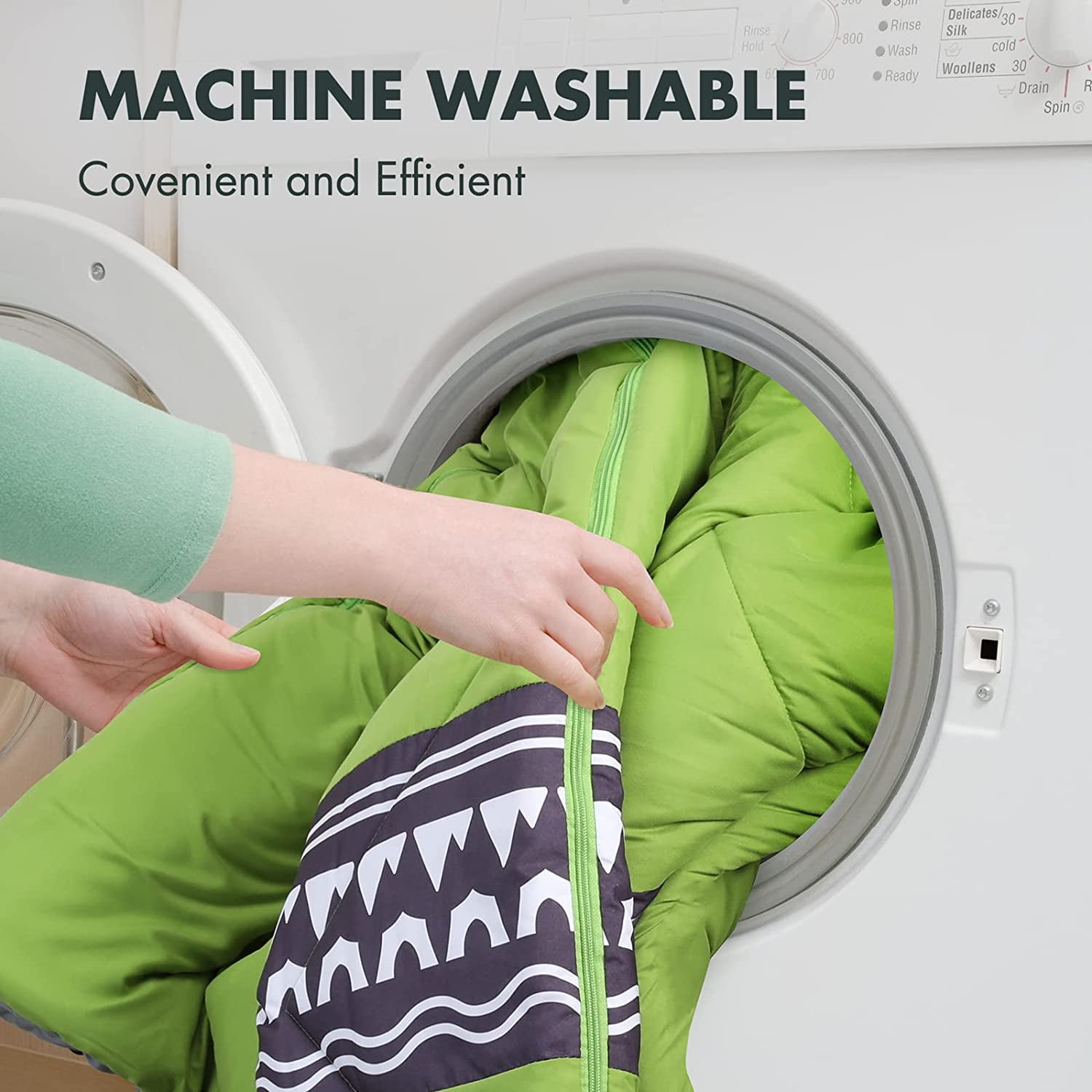 - Efficient Zipper: Equipped with a two-way, no-snag zipper with 2 pullers and an anti-pinch strip, allowing for easy ventilation or full opening into a blanket.